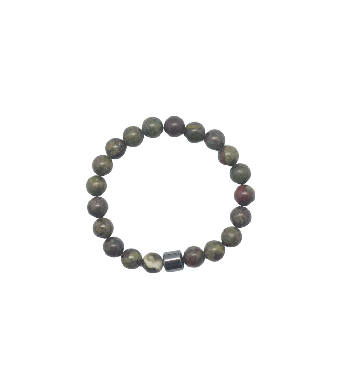 DRAGON BLOOD BRACELET-ROUND BEAD-8MM+HEMATITE-8MM-7INCH