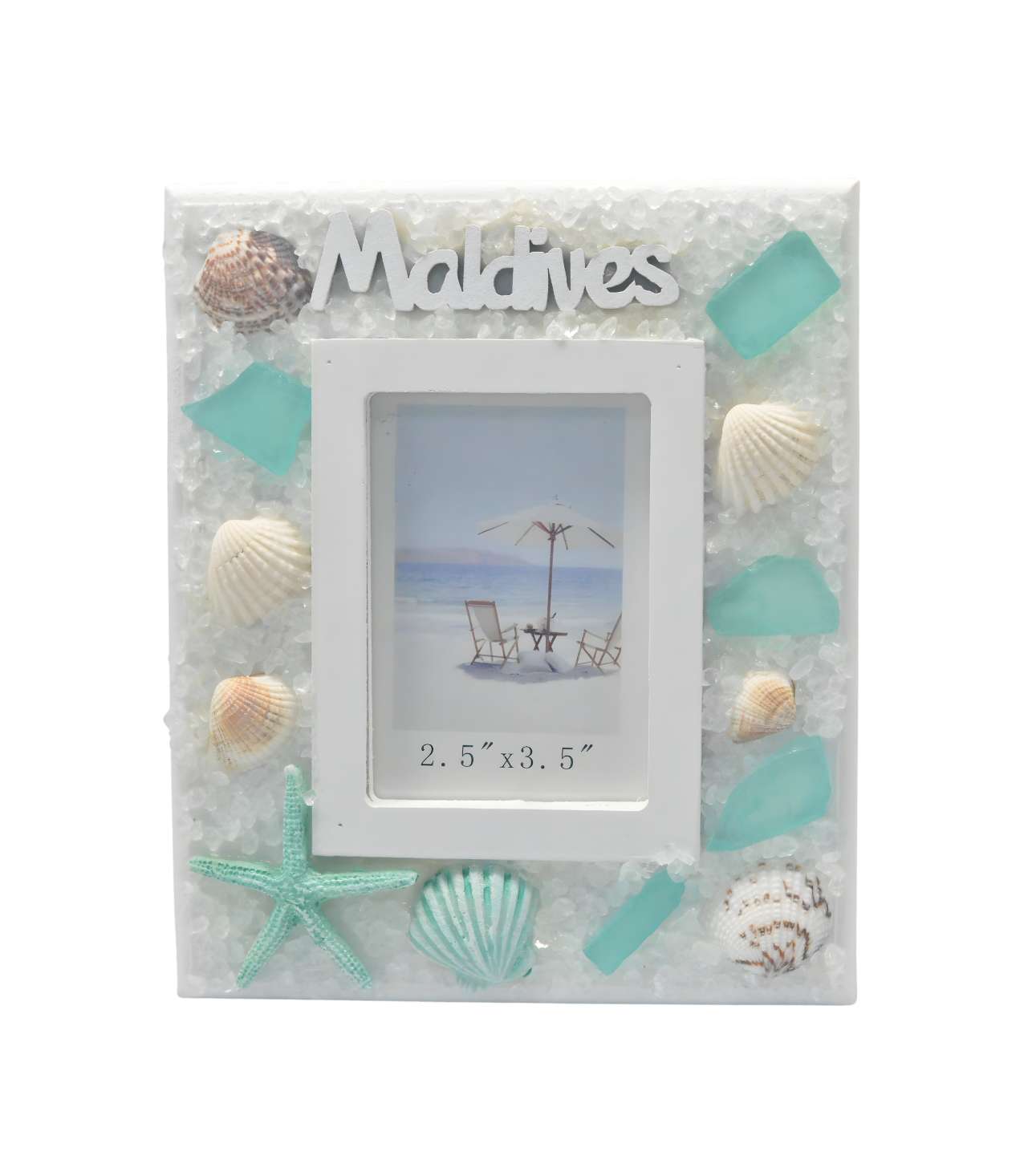 POLY PHOTO FRAME W/SHELL & COLOR STONE 2.5″X3.5″