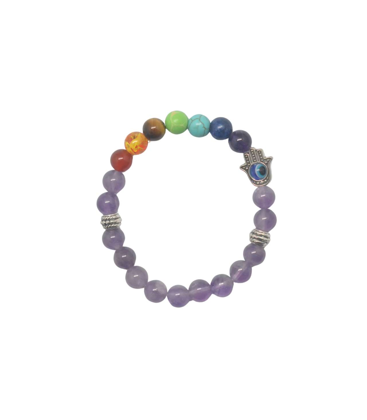 SEVEN CHAKRA BRACELET-AMETHYST- ROUND BEAD-8MM-7INCH