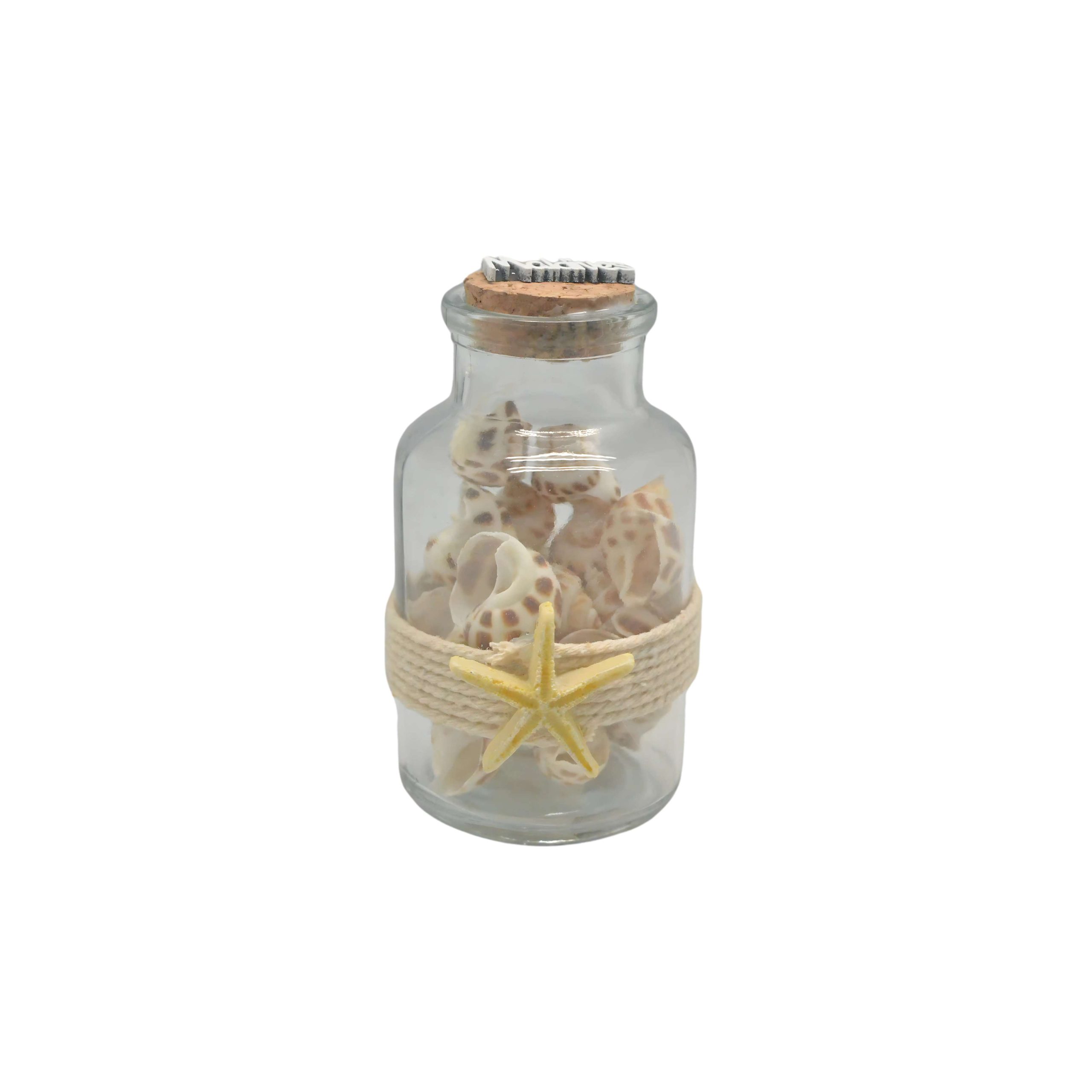 SHELL BOTTLE W/SHELL MALDIVES & STAR FISH 4″