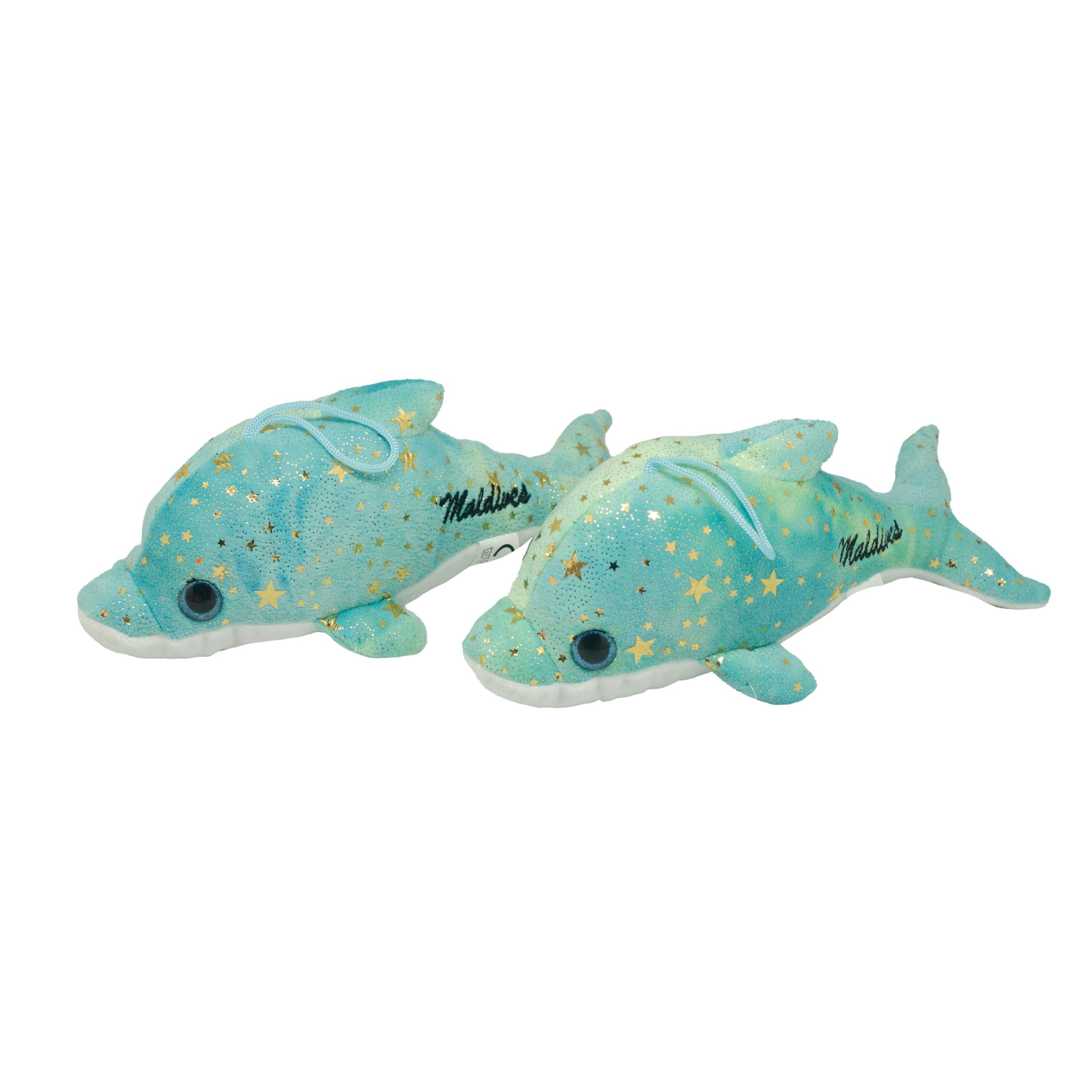 SOFT TOYS DOLPHIN W/GOLD STAR 2 GREEN/PINK 25CM