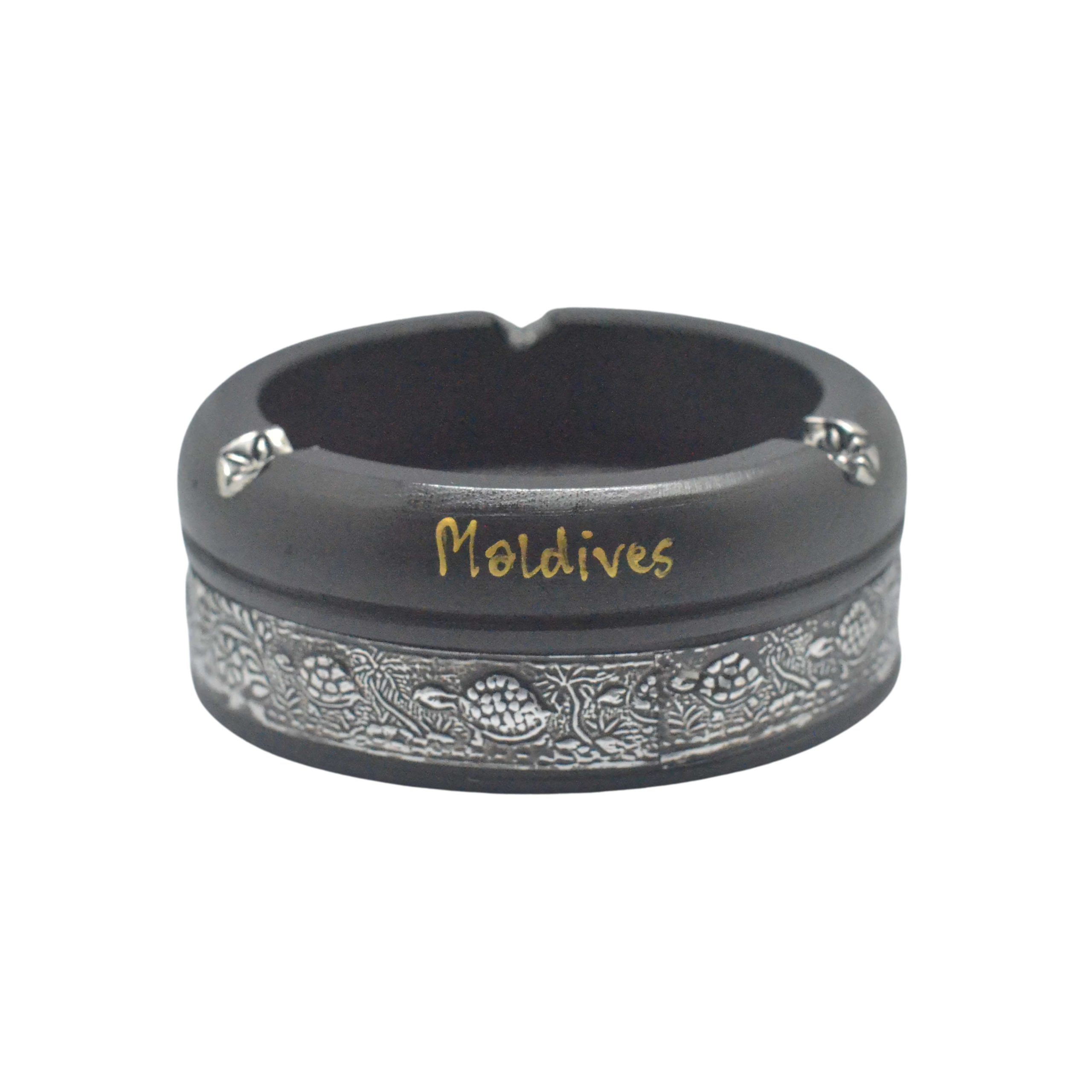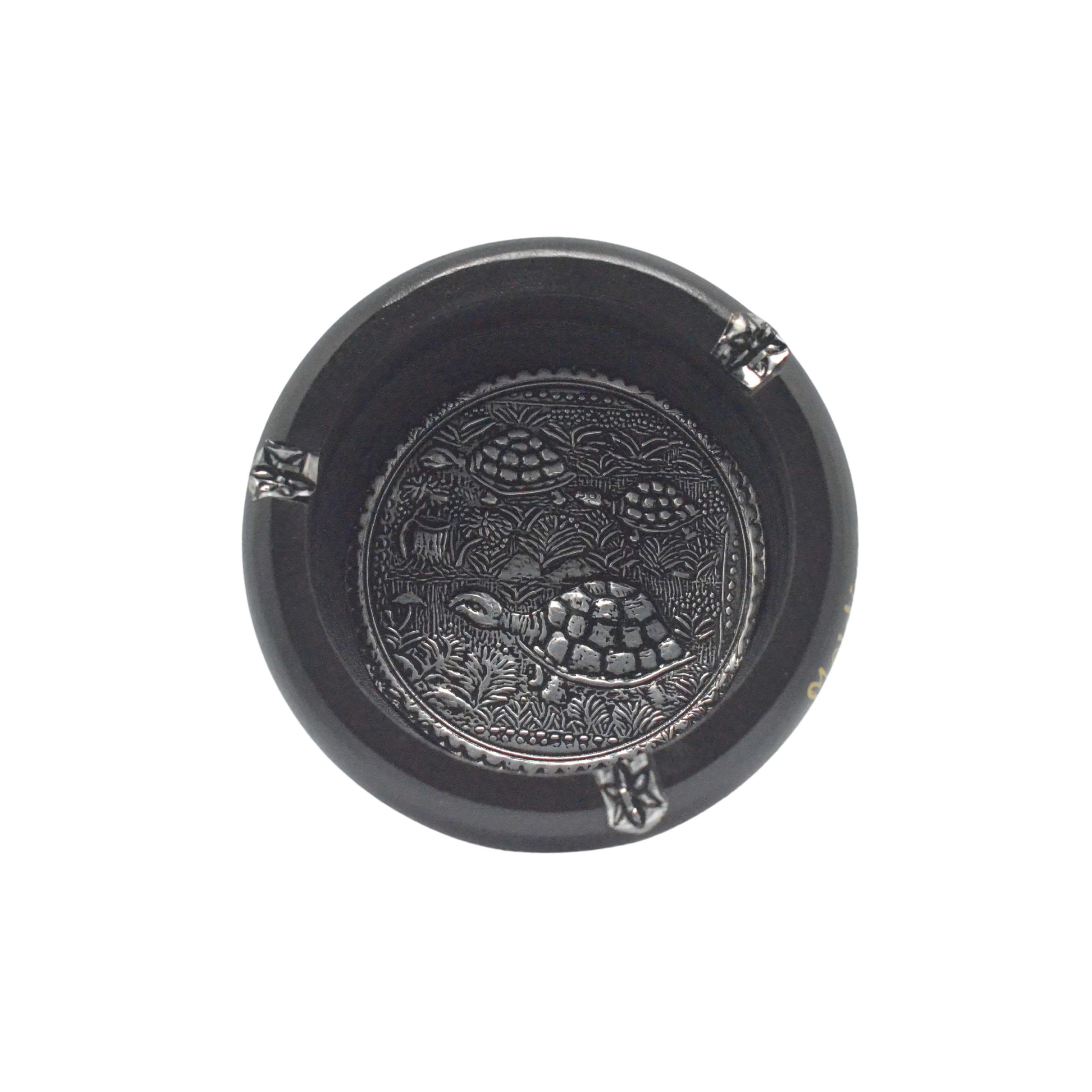 WOODEN ASHTRAY W/METAL ROUND 4″